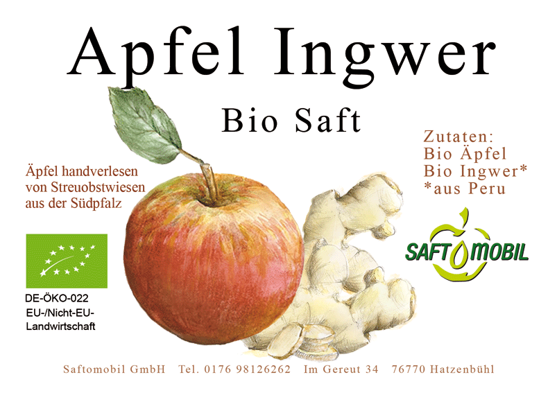 Bio Apfel Ingwer0,97 Liter Flasche 3 Liter Tüte |